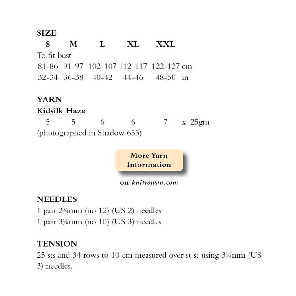 Rowan Arum Sweater Pdf Pattern Using Kidsilk Haze Outback Yarns